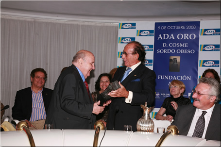 El Presidente del Centro Asturiano de Madrid, D. Cosme Sordo, fue galardonado con el ADA DE ORO de la mano del Presidente de la Fundación ADA, D. Víctor Montes Argüelles, quien entregó la pieza escultórica, creada al efecto por el escultor español D .Pedro María Moraza Bastida y denominada "Laberinto". El Sr. Presidente de la Fundación ADA, D. Víctor Montes Argüelles, transmitió la "gratitud y admiración" de la Entidad que preside, hacia el galardonado. Asimismo hizo entrega a D. Cosme Sordo de la documentación que la acredita como Miembro de Honor de la Organización.